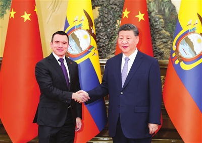 习近平指出,今年是中厄建交45周年,两国关系发展势头良好。厄瓜多尔加入共建“一带一路”大家庭,双方签署自由贸易协定,在能源、矿业、电力、基础设施建设等领域开展了富有成效的合作。中方始终从战略高度和长远角度看待和发展中厄关系,愿同厄方一道努力,推动中厄全面战略伙伴关系不断走深走实,更好造福两国人民。