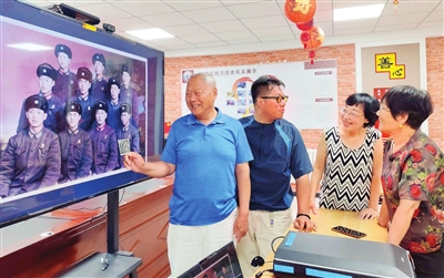 退伍老兵张庭文带来一张他年轻时身穿军装的照片。由于年久褪色,老照片上的人物身影有些模糊。经志愿者修复后,照片中的军装肩章纹路清晰可见。张庭文高兴地说:“真好,我感觉像穿越回了当年。”