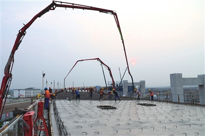 日前,由中铁十八局承建的天津港集疏运专用货运通道工程港城大道互通式立交匝道桥首联现浇梁完成浇筑,为后续工程的稳步推进奠定了坚实基础。