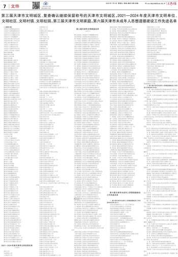 第三届天津市文明城区、复查确认继续保留称号的天津市文明城区,2021—2024年度天津市文明单位、