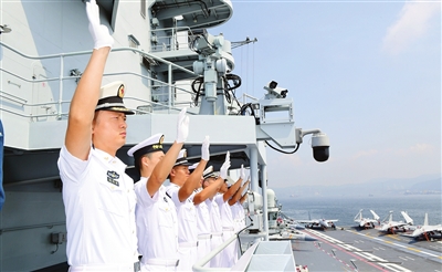 7日清晨,前来送别的香港市民和青少年学生代表早早赶到昂船洲军营码头,湛江舰和运城舰已完成出航前各项准备。繁忙的维多利亚港内,锚泊在西锚地的山东舰、延安舰桅杆上升起旗语为“感谢大家关怀”“为人民服务”的信号旗。10时许,欢送仪式在昂船洲军营码头举行,编队指挥员对香港特区政府和民众的热情支持表示感谢和敬意,主礼嘉宾合影留念。