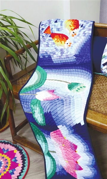 为了让技艺能够快速进入现代生活场景,我在产品款式上进行了非常大的创新。我们尝试将这项技艺融入家纺品里,包括床上用品、沙发用品、茶席用品等,还设计制作了一些艺术装饰品,如装饰画等。当时这些设计和打样工作都是我一点点“抠”出来的,最初是找不到合作者的。