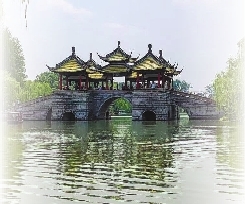 今我来矣,惊异之处在于,与北京颐和园万寿山之阴的苏州街略不同之处,这里的湖区是利用桥、岛、堤、岸来划分的,这就轻易使得原本狭长的湖面,形成了层次分明、曲折多变的山水园林景观。多年前见过一个卡片,全国的西湖有三四十处之多,这多是源于方位所命名。独这里的西湖曰“瘦”,何以如此?其实因湖的窈窕,便可归纳出结论,既可以看出长湖纤纤,更能看出湖体的清俏绰约,美得令人惊叹。我在暗香流水中,随画舫轻荡,看玉桥卧波,依次经过一路楼台亭阁,此不是仙境,还能如何界定!
