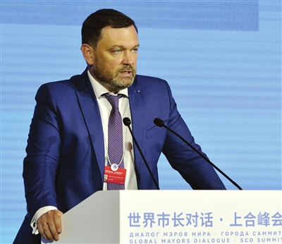 在主题对话会上,俄罗斯圣彼得堡市长亚历山大·贝格洛夫通过视频作主题发言。他说,今年是上海合作组织“中国年”,经过24年发展,上合组织已从6个成员扩大为26个国家的“上合大家庭”,构建起世界幅员最广、人口最多的区域合作组织,该组织已成为连接各国城市合作的重要平台。