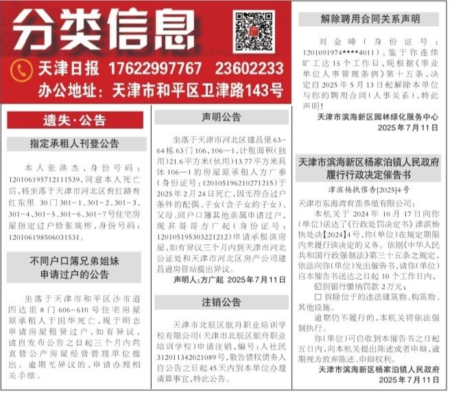 平媒总编室:022-23602716 中心办公室:022-23602888 海河传媒广告有限公司:022-23602233