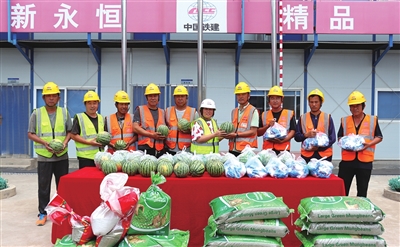 活动中,项目部送去了西瓜、绿豆、白糖以及藿香正气等防暑降温药品和慰问品,同时还向施工一线作业人员普及了夏季防暑小常识,提醒大家务必重视高温防护,严格落实“错峰施工”制度,科学安排作业时间。 通讯员 秦楠