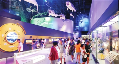 暑假期间,国家海洋博物馆迎来客流高峰,馆内游人如织,热闹非凡。