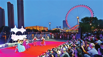 本报讯(记者 王洋 摄影 姚文生)昨晚,“海河之夜”桥边音乐汇——天津交响乐团弦乐四重奏专场,在子牙河南路与北开大街交口附近的亲水平台上演。
