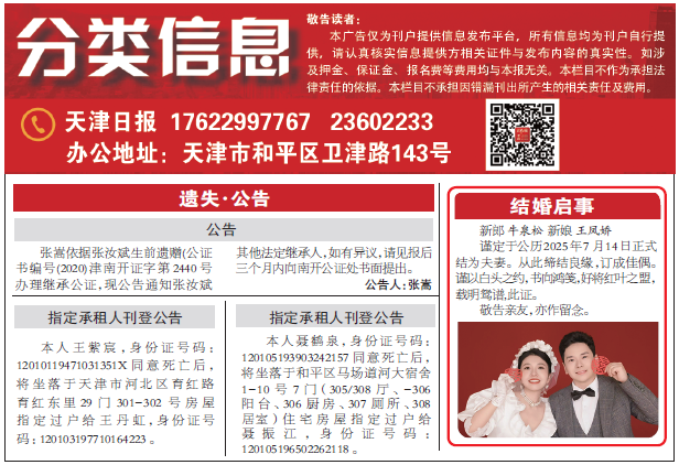平媒总编室:022-23602716 中心办公室:022-23602888 海河传媒广告有限公司:022-23602233