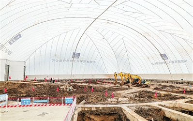 一走进“充气枕头”,记者不由得惊奇:面积达6360平方米的施工工地就这样被隐藏起来,而且并无任何梁柱来支撑气膜。“基坑气膜采用了46根钢索编织成经纬网状体系,将4片单元膜‘拼接’在一起,并通过风机系统向膜结构内充入气体,也同时排风,维持内部压力,让膜材膨胀形成全封闭基坑气膜,创造更大的施工空间。”该项目经理刘海利介绍,气膜还搭载智能控制系统、智能检测报警系统,可实时监测运行状态,一旦发现异常便自动报警并采取措施,即使在12级台风中也能屹立不倒。