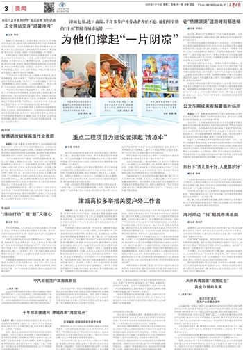 本报讯(记者 姜凝)暑假虽至,但不少高校假期不停摆、放假不放松,利用暑假这一黄金施工期推进基础设施建设、修缮改造、环境提升等工作,以创造更加优质的教学和生活环境。与此同时,为应对高温天气、全力呵护在酷热中坚守岗位的户外工作者,我市多所高校多措并举,开出解暑“凉”方。