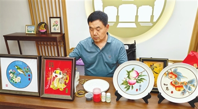 谢学华:一方面,我还是要努力创作更多好作品;另一方面,我也希望走进更多大中小学推广非遗。例如前一阵子,在海棠花盛开的时节,我走进天津大学的非遗课堂。当时我设计了4款海棠花图案供大学生自由选择。然后,大学生们用4个小时的时间,完成一幅掐丝彩砂画作品。艺术是相通的,我希望以这种潜移默化的方式,让学生们了解我们中国传统的艺术造型特色,将中国传统文化的种子埋在他们心里。