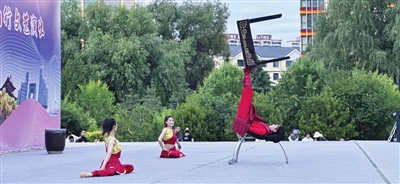 此次演出团队由来自天津市群众艺术馆、天津市多个区文化馆的业务干部以及天津歌舞剧院、天津市杂技团的演员组成。杂技、二胡重奏、男女声独唱等形式多样的节目,赢得现场阵阵掌声。杂技《俏花旦》中,两位身着京剧服饰的演员轮番表演“跑肩二节接空竹”“四层叠罗汉尖子后翻落地二节接空竹”“三点翻接空竹”“三小翻接空竹”等设计新颖、难度高又颇具轻松感的技巧动作。在杂技《重蹬技》的表演过程中,大瓷坛和方桌在演员脚上花式翻转,惊险的动作引得观众发出阵阵惊呼和热情掌声。二胡重奏《太极琴侠》《赛马》的表演,令人沉浸在二胡独特的音律之中,展现传统文化的魅力。《我们的祖国歌甜花香》《红旗飘飘》《美丽中国》《春风十万里》《中国范儿》等歌曲,或经典或流行,让观众们沉浸在跳跃的音符中,享受音乐的美妙。此外,充满浓郁少数民族风情的舞蹈 《家园的歌谣》《幸福在路上》,由黄南藏族自治州文化馆舞蹈团表演。津青两地文艺工作者同台演出,为整场节目增添亮色。
