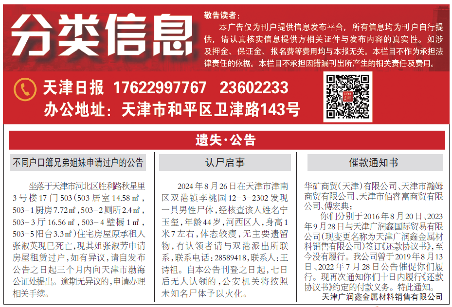 平媒总编室:022-23602716 中心办公室:022-23602888 海河传媒广告有限公司:022-23602233