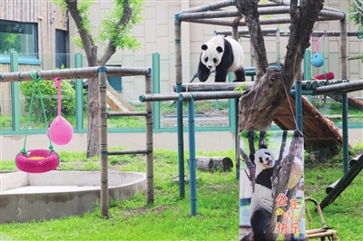 昨日,天津市动物园为大熊猫“喜乐”举办12岁生日会。外场以“公主叫喜乐”为主题布置了萌照展板和竹制飞机,内场打造“喜乐号”飞船乐园。2015年从四川来津的“喜乐”,以其优雅萌态成为动物园的明星,吸引众多游客前来为其庆生。 记者 赵建伟 摄