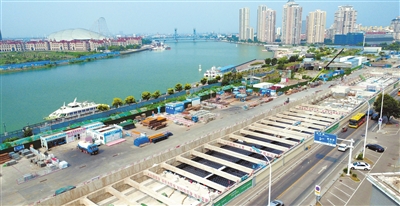 日前,我市轨道交通B1线外滩公园站一期主体结构封顶,项目建设取得了突破性进展。记者 周伟 摄