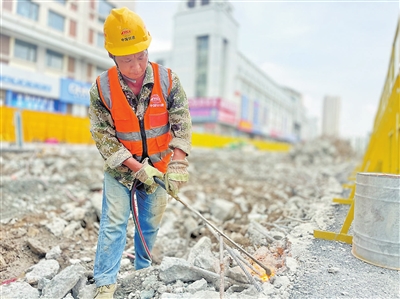 随着地铁8号线延长线各车站建设的有序推进,中国铁建大桥局施工人员开始对车站周边道路进行恢复施工。记者 张磊 摄