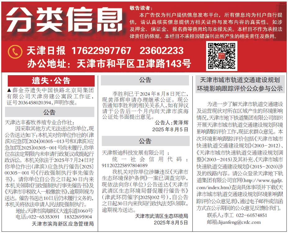 平媒总编室:022-23602716 中心办公室:022-23602888 海河传媒广告有限公司:022-23602233