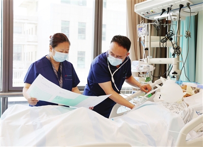 但真正的战斗才刚开始。尹主任说,给患者擦身换衣,将控温的降温毯放在背后继续降温,但此时患者依然处于昏迷状态,检查结果显示肝肾功能全线异常,肺部感染、消化道出血,特别是颈部强直,四肢张力很高——这是脑损伤的信号。