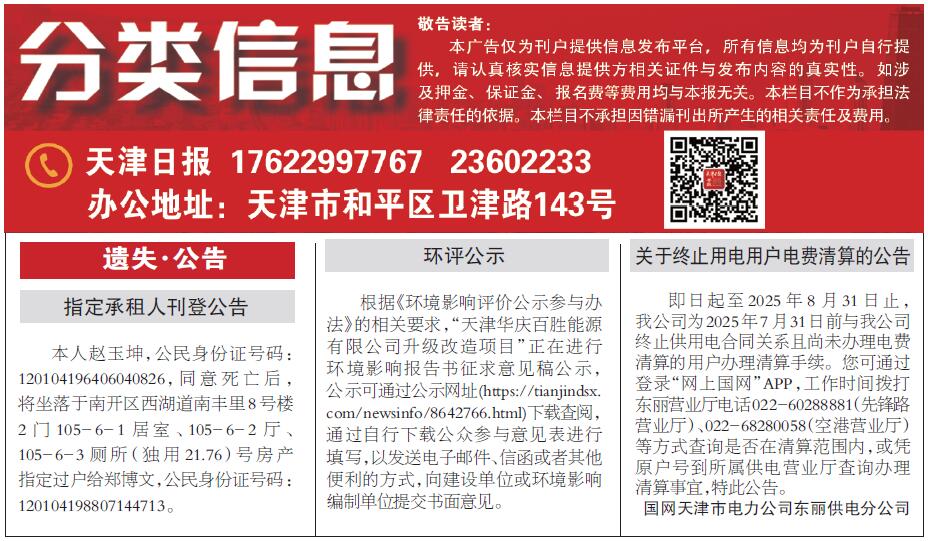 平媒总编室:022-23602716 中心办公室:022-23602888 海河传媒广告有限公司:022-23602233