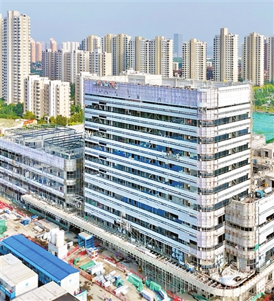 由中建三局承建的天津市口腔医院梅江院区已进入装饰装修和机电安装阶段,并计划于本月完成外檐施工。梅江院区将新建门诊医技住院综合楼及附属用房,满足市民就医需求。 记者 张磊 摄