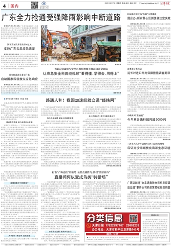 广东全力抢通受强降雨影响中断道路(图)