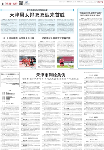 本报讯(记者 谢晨)2025年全国排球锦标赛昨天分别在广东佛山与河北保定赛区展开第三天的激战,天津渤海银行女排和天津食品集团男排双双告捷,均赢得了本次全锦赛的首场胜利。
