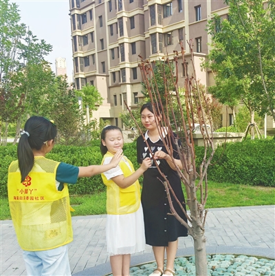 近日,一段小学生在盲道旁讲解文明行为的视频,被津南区海棠街道滨香园社区的居民们刷了屏。