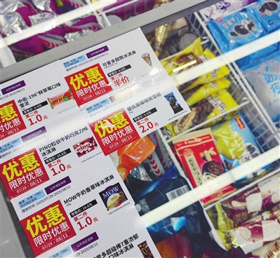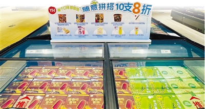 “6月20日至8月31日,针对10个系列的冰品,SM天津滨海城市广场店等‘调改店’推出‘任选10支可享八折’的营销活动,其中涉及伊利、和路雪等品牌的部分雪糕。”永辉超市SM天津滨海城市广场店店长齐宇告诉记者,目前,该店在售雪糕共有60多种,涉及15个品牌,覆盖巧克力、香草、红豆、葡萄、草莓、芒果、蓝莓、菠萝等口味。其中,零售价为5元/支以下的雪糕占比达75%左右。