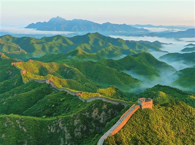 这是8月14日在河北省承德市滦平县拍摄的长城云海景观(无人机照片)。当日清晨,位于河北省承德市滦平县的金山岭长城附近出现云海景观,景美如画。 新华社发