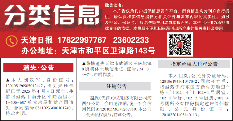 平媒总编室:022-23602716 中心办公室:022-23602888 海河传媒广告有限公司:022-23602233