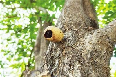 近日,不少市民在梅江公园等地发现,一些树干上“长”出了蚕蛹状的白色“小兜兜”,但里面并没有完整的蚕蛹或蚕蛾,只有一些细小的蜂类飞进飞出。它们并非装饰物,而是防治美国白蛾的“生物容器”——柞蚕茧,里面寄生着害虫天敌“周氏啮小蜂”。我市今年6月底至9月底计划繁育并释放约4亿头周氏啮小蜂,目前已释放约2亿头,通过“以虫治虫”构建绿色防控体系。