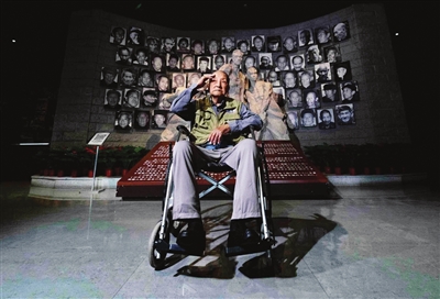 张增老人头发花白、身形消瘦,因腿脚不便,需要乘坐轮椅,由儿子张洪潮一路推着前行。进入“在日殉难烈士·劳工纪念馆”的一刻,老人平静的眼神泛起波澜,手指着墙壁上展陈的令人心酸的照片,微微颤抖,那段不堪回首的岁月涌上心头。