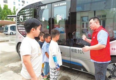 本报讯(记者 苏晓梅 摄影 通讯员 屠建民)昨天,天津工业大学新校区公交场站迎来一群特殊的乘客——南开区兴南街道耀远里社区的孩子们。场站变身科技探索实践基地,社区孩子们在这里亲身体验智能驾驶公交车,为暑期生活增添了一抹别样的“科技亮色”。
