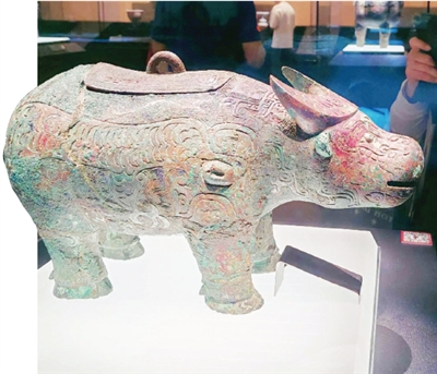 徐河建告诉记者,此次来津展出的青铜器中还有殷墟博物馆镇馆之宝“亚长牛尊”。这件目前殷墟发现的唯一一件牛形青铜器,体态健壮,纹饰繁缛。正面看它,头前伸、口微张、目大睁;侧面看它,肚大又圆,腿粗且短,臀则微翘。不仅如此,它身上还有虎、鱼、鸟等多种优美的动物纹饰。如此栩栩如生、神采奕奕的造型,让它被很多观众亲切地称为“憨憨牛牛”。