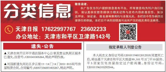 平媒总编室:022-23602716 中心办公室:022-23602888 海河传媒广告有限公司:022-23602233