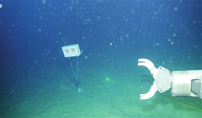 在“海琴”号水面监控动力站,12个整齐排列的显示屏,将“海琴”号在海里的一举一动尽收眼底。显示屏上数据不断跳动,海水越来越深,到4140米,坐底了!一阵细腻的泥尘,好似海底腾起的烟雾,让镜头前一片模糊。“海琴”号采集了海底沉积物样品并放置了标识。