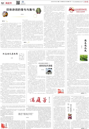 在旧体诗词创作中,借用前人的个别诗句,或一字不改,或略作变动,称之为借句,是一种常见的修辞手法。