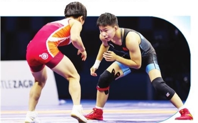 北京时间9月18日,在克罗地亚首都萨格勒布举行的2025年世界摔跤锦标赛女子自由式摔跤50公斤级决赛中,中国选手张玉(右)2:8不敌朝鲜选手元明京,获得亚军。