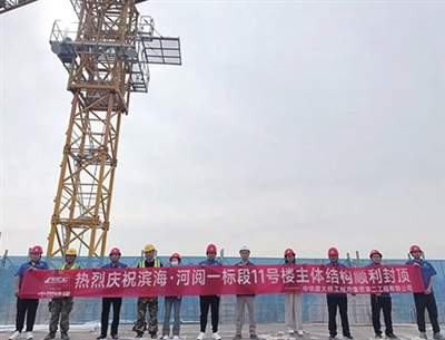 9月20日,由驻津央企中国铁建大桥局所属二公司承建的滨海·河阅项目首栋楼主体结构顺利封顶。项目建成后,将进一步优化人居环境,对驱动城市更新与经济增长具有重要意义。