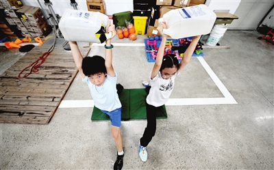 在天津市南开区五马路小学(以下简称五马路小学),有一支“拼”出来的田径队。2020年,队伍在质疑声中成立。没有标准跑道,他们就把地下停车场、校园小路当作训练场; 没有训练臂力的哑铃,他们就用洗衣液空桶灌水替代;没有推举的杠铃,他们就用装修剩下的PVC(聚氯乙烯)管绑上矿泉水瓶,两边的重量还得一样;没有训练用的阻力绳,他们就用家长送来的旧轮胎和松紧带替代;没有训练跳跃的垫子,他们就用家长提供的塑料凳……五马路小学田径队就在教练和家长们的“拼拼凑凑”中茁壮成长起来。就是在这样的条件下,一群孩子用五年时间,跑出了一条不平凡的体育之路。