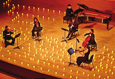 本报讯(记者 刘茵 摄影 姚文生)昨晚,ECM欧洲之声室内乐团《暮光之城》好莱坞电影金曲烛光音乐会,在天津大剧院音乐厅上演。六位欧洲青年音乐家为观众呈现了一场光影与旋律交织的精彩演出。