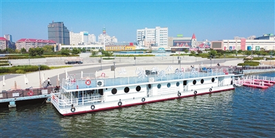 日前,我市滨海新区海河外滩码头建成投用。据了解,滨海新区文旅部门计划再陆续新建和升级沿河游船码头14处,覆盖到河滨公园、会展中心广场等更多景区。 记者 周伟 摄