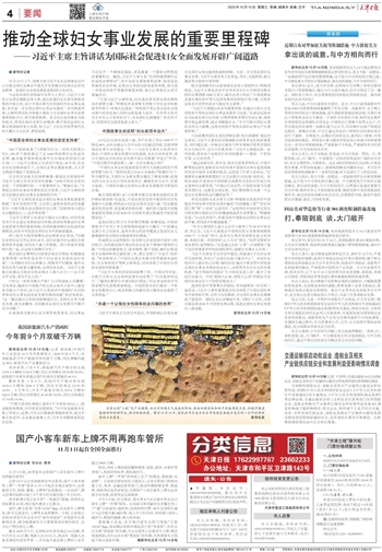 ~~~——习近平主席主旨讲话为国际社会促进妇女全面发展开辟广阔道路