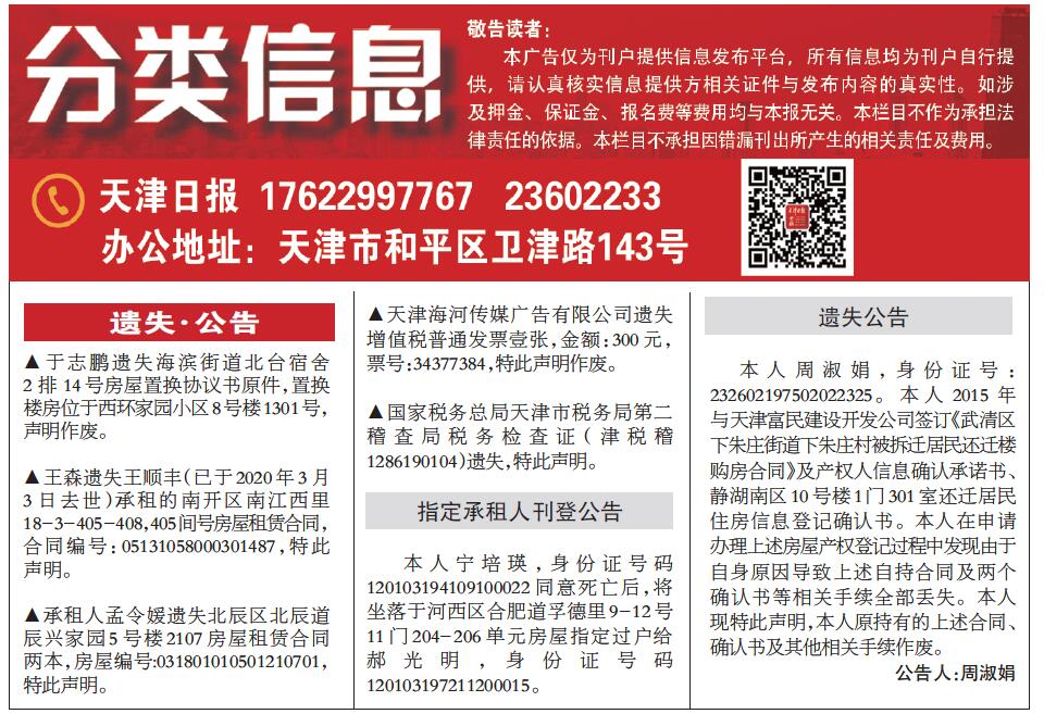 平媒总编室:022-23602716 中心办公室:022-23602888 海河传媒广告有限公司:022-23602233