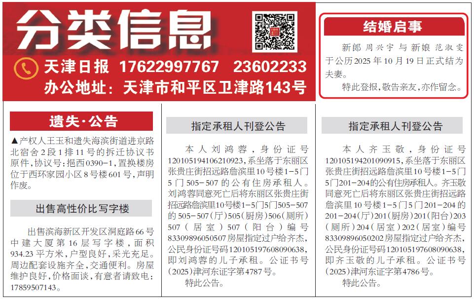 平媒总编室:022-23602716 中心办公室:022-23602888 海河传媒广告有限公司:022-23602233