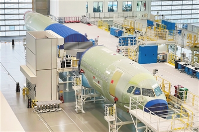 昨天,空客天津第二条总装线正式投产。 记者 张磊 摄