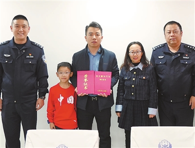 11月22日下午,黄长春从天津市公安局河西分局见义勇为工作办公室民警手中接过了沉甸甸的见义勇为行为确认证书和荣誉证书。