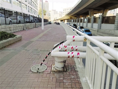 “白天还能绕着走,可是到了晚上,光线昏暗,一不留神就会被限高架绊倒,很危险。”一位经过这里的行人抱怨说。