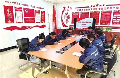 昨天,中铁十八局天津港集疏运专用货运通道工程(第2标段)施工项目经理部二分部工委举办党的二十届四中全会精神知识竞赛,9名职工同台竞技,以赛促学凝聚建设合力。